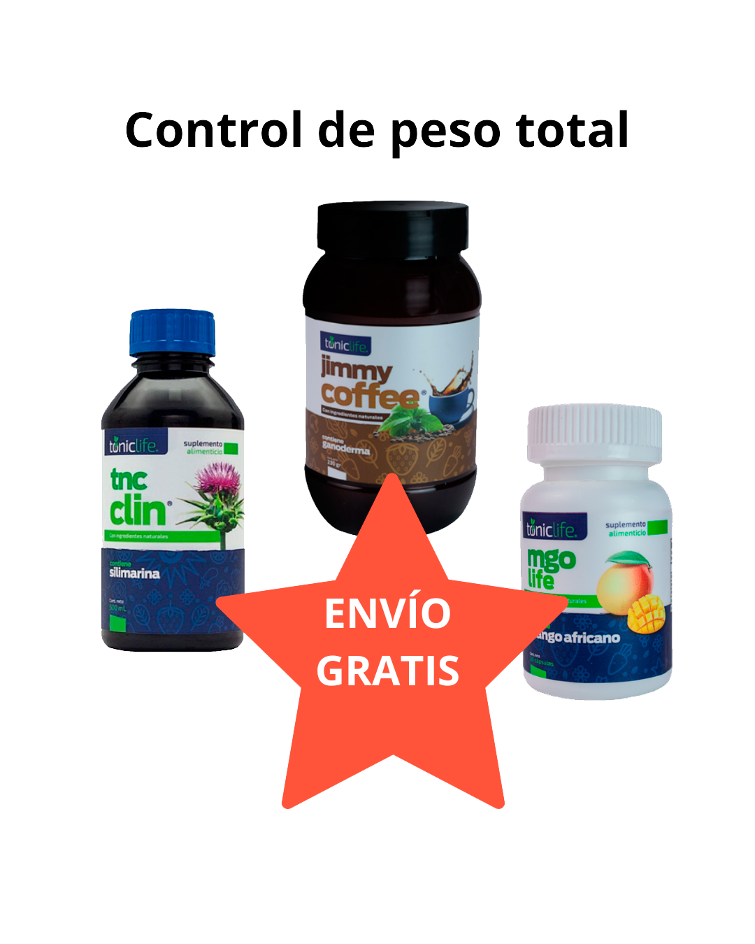tnc clin 500 ml, jimmy coffee frasco con 270g, mgo life 30 caps